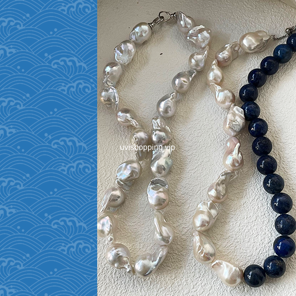 Lapis lazuli, big baroque pearl necklace quantity
